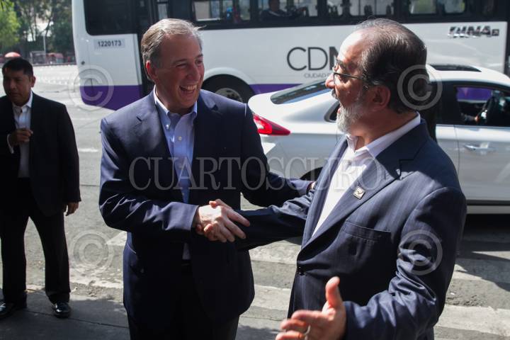 CIUDAD DE MÉXICO, 19MARZO2018.- Juan Díaz de la Torre, consejero nacional del PANAL; José Antonio Meade Kuribreña, candidato a la Presidencia de México por la coalición "Todos por México", y Luis Castro Obregón, líder del Partido Nueva Alianza se reunieron con los candidatos del PANAL a diversos cargos políticos, en el ex Convento de San Hipólito. FOTO: MOISÉS PABLO /CUARTOSCURO.COM