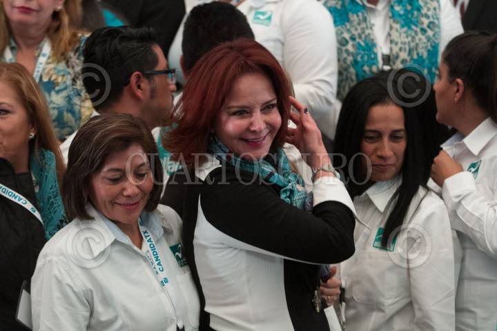 CIUDAD DE MÉXICO, 19MARZO2018.- Purificación Carpinteyro candidata del Partido Nueva Alianza a la Jefatura de Gobierno, durante la reunión del candidato presidencial José Antonio Meade con los candidatos del PANAL a diversos cargos políticos, en el Ex Convento de San Hipólito. FOTO: MOISÉS PABLO /CUARTOSCURO.COM