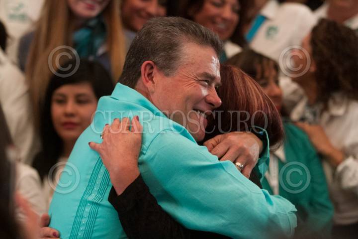 CIUDAD DE MÉXICO, 19MARZO2018.- Los actores Gabriela Goldsmith y Ernesto Laguardia candidatos a diputados federales por el Partido Nueva Alianza, durante la reunión del candidato presidencial José Antonio Meade con los candidatos del PANAL a diversos cargos políticos, en el Ex Convento de San Hipólito. FOTO: MOISÉS PABLO /CUARTOSCURO.COM
