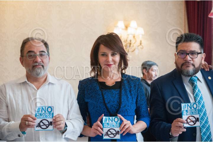 CIUDAD DE DE MÉXICO, 13JUNIO2018.- Luis Castro Obregón, dirigente nacional de Nueva Alianza, y Purificación Carpinteyro Calderón, candidata por Nueva Alianza al Gobierno de la Ciudad de México, ofrecieron una conferencia de prensa para hablar sobre su propuesta de prohibir que tractocamiones de doble caja, circulen por la Ciudad de México. FOTO: DIEGO SIMÓN SÁNCHEZ /CUARTOSCURO.COM