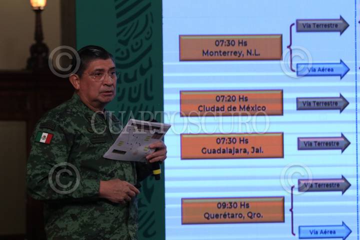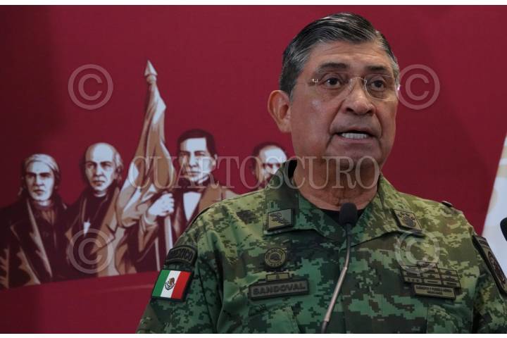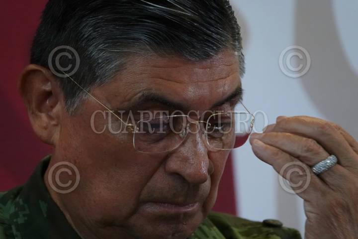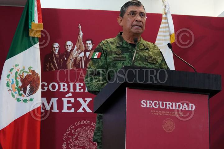 Luis Crescencio Sandoval durante la conferencia de prensa por la detención de Ovidio Guzmán "El Ratón" en Culiacán, Sinaloa.