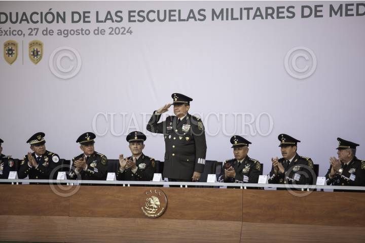CIUDAD DE MÉXICO, 27AGOSTO2024.- Luis Cresencio Sandoval González, secretario de la Defensa Nacional (SEDENA) encabezó la Ceremonia de graduación de las escuelas militares de medicina, enfermería y oficiales de sanidad con un total 251 oficiales profesionistas y 5 becarios de países hermanos. FOTO: ANDREA MURCIA /CUARTOSCURO.COM