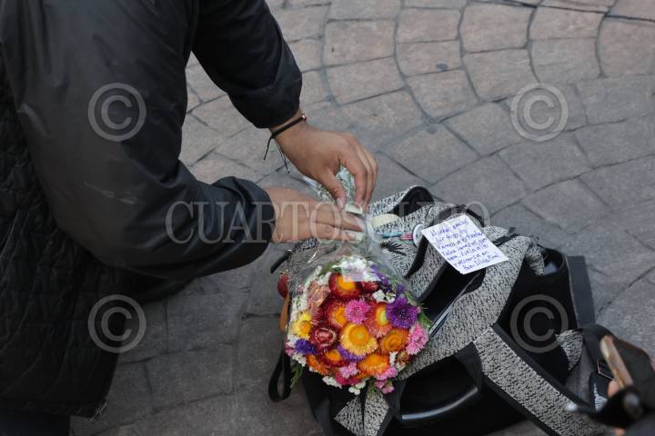CIUDAD DE MÉXICO, 29NOVIEMBRE2024. Un admirador arregla un ramo de flores a las afueras de la funeraria ubicada en El Pedregal, donde se lleva a cabo el funeral de la primera actriz Silvia Pina, fallecida el día de ayer en un nosocomio al sur de la Ciudad de México. FOTO: EDGAR NEGRETE LIRA/CUARTOSCURO.COM