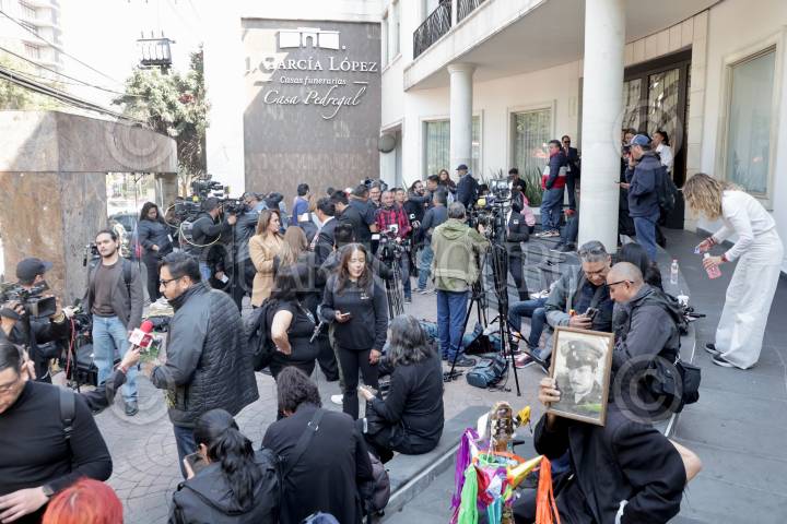 CIUDAD DE MÉXICO, 29NOVIEMBRE2024. Medios de comunicación a las afueras de la funeraria ubicada en El Pedregal, donde se lleva a cabo el funeral de la primera actriz Silvia Pina, fallecida el día de ayer en un nosocomio al sur de la Ciudad de México. FOTO: EDGAR NEGRETE LIRA/CUARTOSCURO.COM