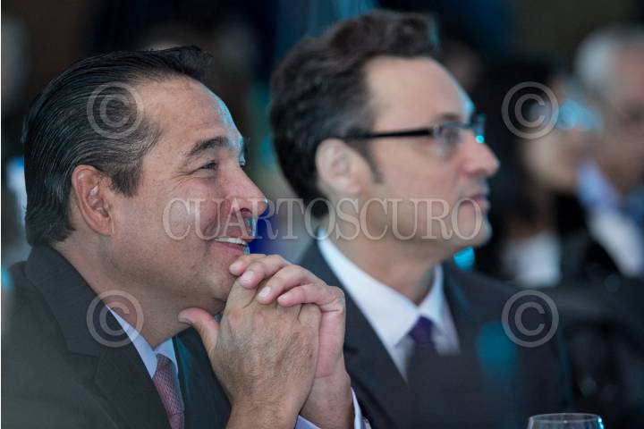 CIUDAD DE MÉXICO, 08JUNIO2017.- Luis Enrique Miranda Nava, secretario de Desarrollo Social, y Gerardo Rozanski, presidente de Unilever México y Caribe, durante la presentanción y firma del convenio entre la empresa y la secretaría de Desarrollo Social para impulsar la producción de alimentos amigables con el medio ambiente y el impulso a emprendedores. FOTO: GALO CAÑAS /CUARTOSCURO.COM
