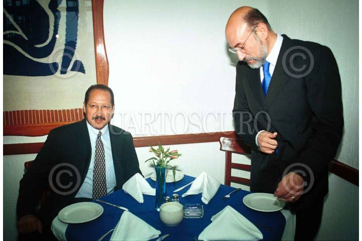 Los presidentes de Acción Nacional, Luis Felipe Bravo Mena, y del Partido de la Revolución Democrática, Leonel Godoy, se reunieron a desayunar esta mañana en un restaurante en la Condesa, para dejar por el momento las diferencias y privilegiar coincidencias para impulsar el trabajo legislativo. FOTO: Eunice Adorno/CUARTOSCURO.COM