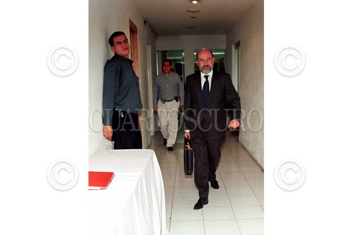 Juan Carlos del Río, candidato a gobernador de Campeche, y Luis Felipe Bravo Mena, acusan a la empresa contratada por el IFE de fraude en Campeche. FOTO: Sandra Perdomo/CUARTOSCURO.COM