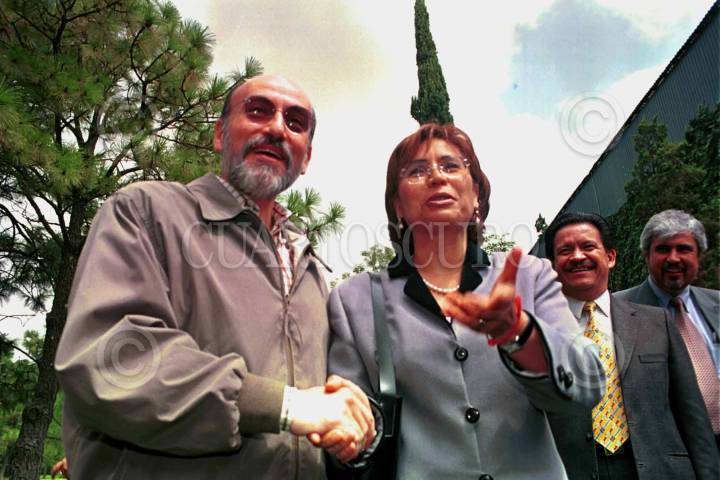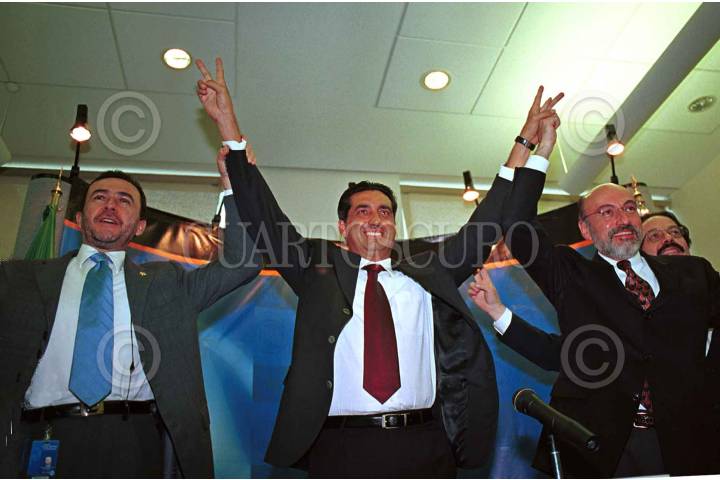 Carlos Medina, coordinador de proyectos electorales 2003, Juan Carlos del Río, candidato a gobernador de Campeche, y Luis Felipe Bravo Mena, seguros de ganar las elecciones en el estado de Campeche. FOTO: Sandra Perdomo/CUARTOSCURO.COM