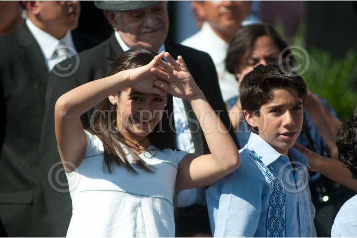 SILAO, GUANAJUATO, 23MARZO2012.- María Calderón Zavala, y Luis Felipe Calderón Zavala, hijos del Presidente de México Felipe Calderón Hinojosa, durante la llegada del Santo Padre Benedicto XVI en el Aeropuerto Internacional de Guanajuato. FOTO: MOISÉS PABLO /CUARTOSCURO.COM