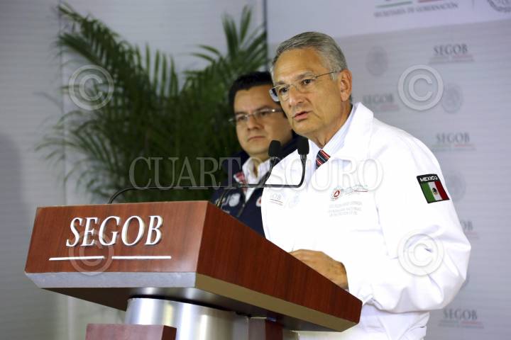 MÉXICO, D.F., 22AGOSTO2014.- El coordinador nacional de Protección Civil de la Secretaría de Gobernación (Segob), Luis Felipe Puente Espinoza, señaló que hasta el momento los pronósticos apuntan que la tormenta tropical Marie no impactará territorio nacional, y los estados en donde ha tenido alcance no presentan mayores afectaciones. FOTO: CUARTOSCURO.COM