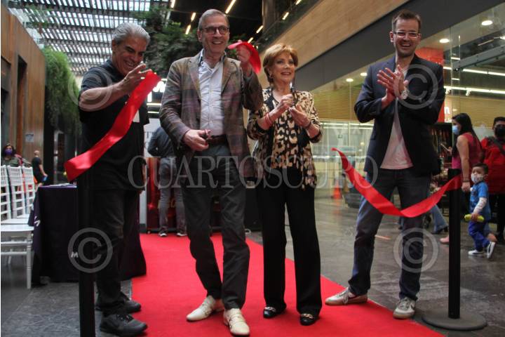 Los actores Luis Gatica, Jaqueline Andere, el productor Morris Gilbert y el conductor Poncho Vera, realizaron el corte de listón de la presentación del proyecto ¡Vamos por el público!, realizada en la Plaza Comercial Miyana