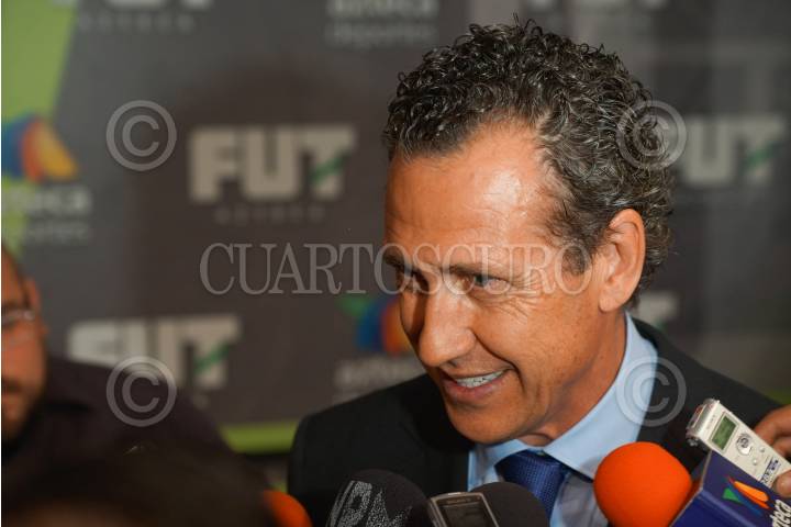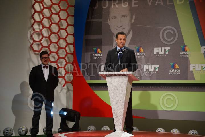 MEXICO, DF, 23ABRIL2013.-En el foro 2 de TV Azteca se llevó a cabo una transmisión especial para dar a conocer la firma entre FUT Azteca y el mítico ex futbolista Jorge Valdano. El ex merengue agradeció la nueva oportunidad que le brindó la televisora para conformar el equipo de Fut Azteca. FOTO: ALEJANDRO NEYRA / CUARTOSCURO.COM