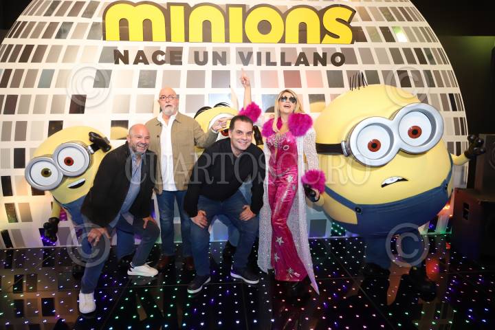 Luis García, Christian Martinoli, Andrés Bustamante e Itatí Cantoral quienes prestan sus voces a la película animada “Minions, Nace un villano” a su paso por la alfombra roja en un cine de Polanco.