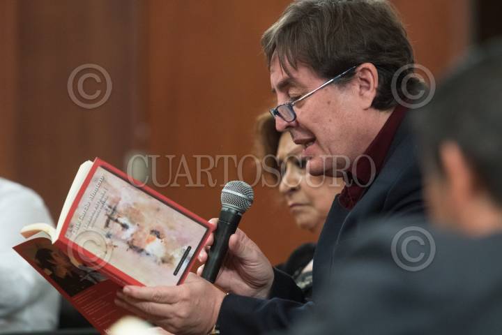 CIUDAD DE MÉXICO, 10MARZO2019.- El poeta español Luis García Montero hablo sobre su obra y su vida en la sala Manuel M. Ponce del Palacio de Bellas Artes acompañado de amigos como Cristina Pacheco, Mara Lamadrid, José Ángel Leyva, María Baranda, Juan Carlos Abril, y Margarito Cuellar, en la cita leyó algunos de sus poemas contenidas en su libro "Lágrima Extraña/Antología Poética". FOTO: MOISÉS PABLO /CUARTOSCURO.COM