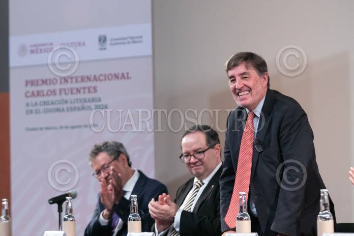 CIUDAD DE MÉXICO, 20AGOSTO2024.- Luis García Montero recibió el Premio Internacional Carlos Fuentes, en la Sala Adamo Boari en el Palacio de Bellas Artes. A la ceremonia asistieron Silvia Lemus, Elena Poniatowska, Elmer Mendoza, Leonardo Lomelí y Marina Núñez Bespalova. FOTO: MOISÉS PABLO/CUARTOSCURO.COM