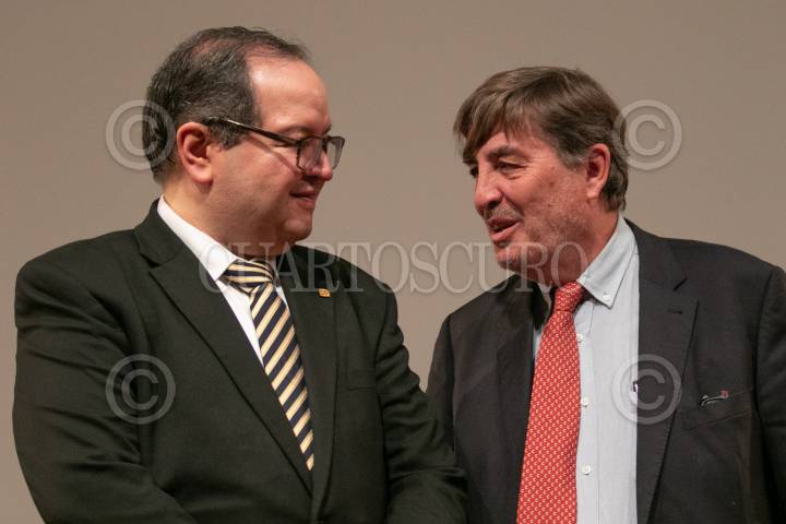 CIUDAD DE MÉXICO, 20AGOSTO2024.- Leonardo Lomelí, rector de la UNAM, conversa con Luis García Montero, quien recibió el Premio Internacional Carlos Fuentes, en la Sala Adamo Boari en el Palacio de Bellas Artes. FOTO: MOISÉS PABLO/CUARTOSCURO.COM