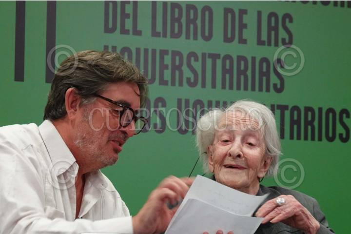 CIUDAD DE MÉXICO, 27AGOSTO2024.- Luis García Montero, director de Instituto Cervantes, e Ida Vitale, traductora y ensayista, conversaron durante el Conversatorio " Érase un bosque de palabras" en la VI Feria Internacional del Libro de las Universitarias y los Universitarios, realizado en el Centro de Exposiciones y Congresos UNAM. FOTO: GRACIELA LÓPEZ /CUARTOSCURO.COM
