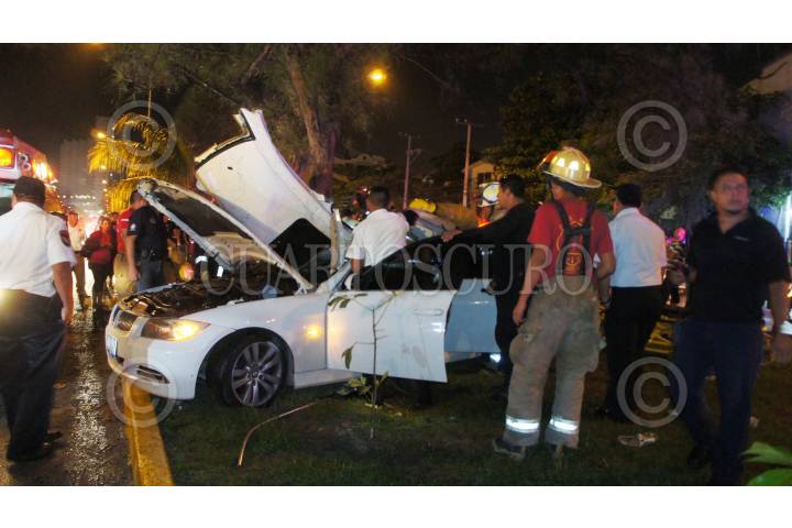 CANCUN, QUINTANA ROO 22OCTUBRE2012.- Accidente de Luis Gerardo Venegas Jugador de Atlante cuando transitaba abordo de su BMW en la av Bonampak de Cancún, y con un saldo de 4 heridos mas. FOTO: CSPHOTO /CUARTOSCURO.COM