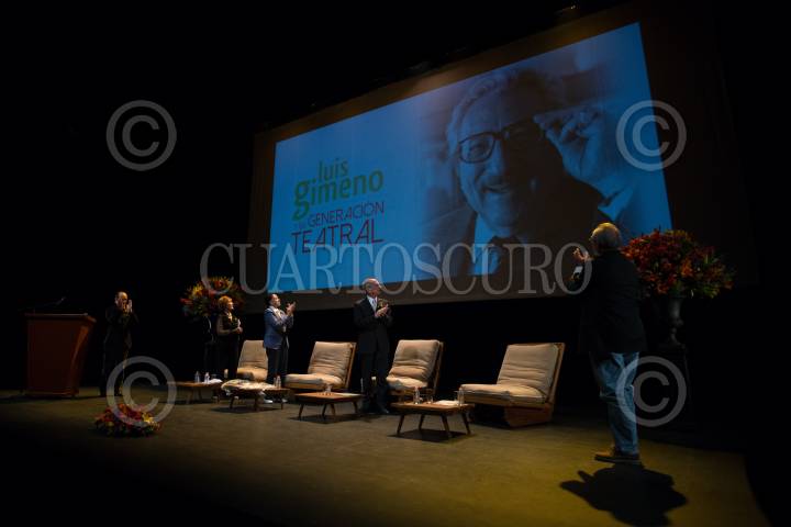 CIUDAD DE MÉXICO, 09NOVIEMBRE2017.- Virginia Gutiérrez, Lilia Aragón, Andrés Torres y Oscar Narváez, durante el homenaje póstumo a "Luis Gimeno y su generación teatral, una trayectoria de resistencia, dedicación y entusiasmo", realizado en el Teatro Salvador Novo del Centro Nacional de las Artes (CENART). FOTO: ADOLFO VLADIMIR /CUARTOSCURO.COM