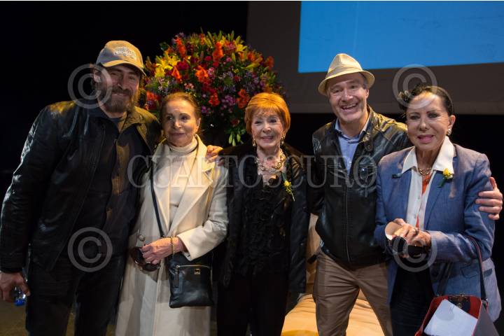 CIUDAD DE MÉXICO, 09NOVIEMBRE2017.- Los actores Demián Bichir, María de la Cruz Nájera Botello, Virginia Gutiérrez, Bruno Bichir y Lilia Aragón, durante el homenaje póstumo "Luis Gimeno y su generación teatral, una trayectoria de resistencia, dedicación y entusiasmo", realizado en el Teatro Salvador Novo del Centro Nacional de las Artes (CENART). FOTO: ADOLFO VLADIMIR /CUARTOSCURO.COM
