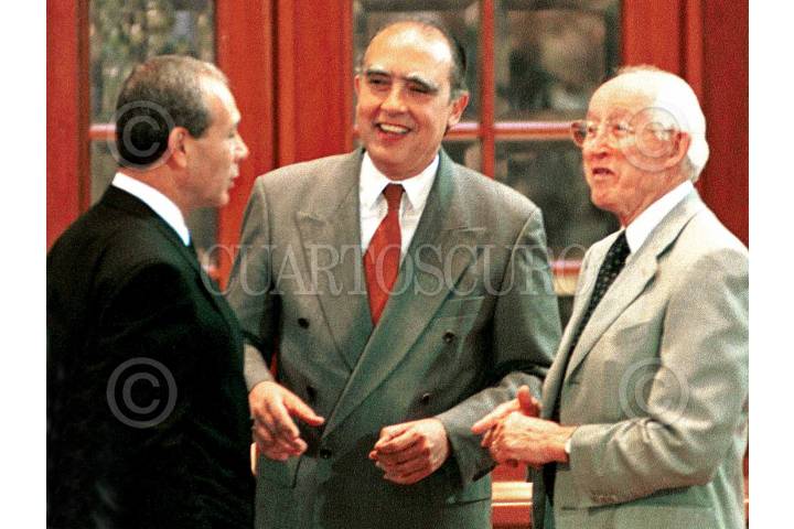 Pedro Cedisola, Fernando Canales Clariond y Luis H. Alvarez platican amenamente en la presentación del Programa Sectorial Agrario 2001-2006, en la residencia oficial de los Pinos. FOTO: Christian Palma/CUARTOSCURO.COM