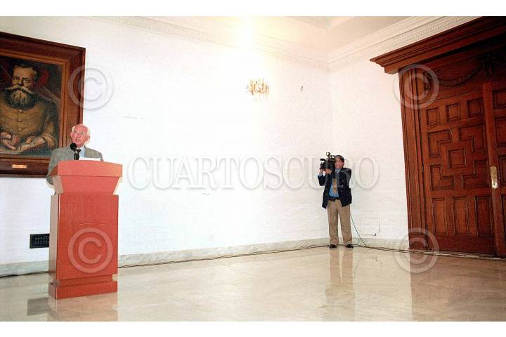 Luis H. Alvarez comisionado para la Paz en Chiapas del gobierno federal, hablo ante medios esta tarde en el salon Venustiano Carranza de los Pinos. FOTO: Victoria Valtierra/CUARTOSCURO.COM
