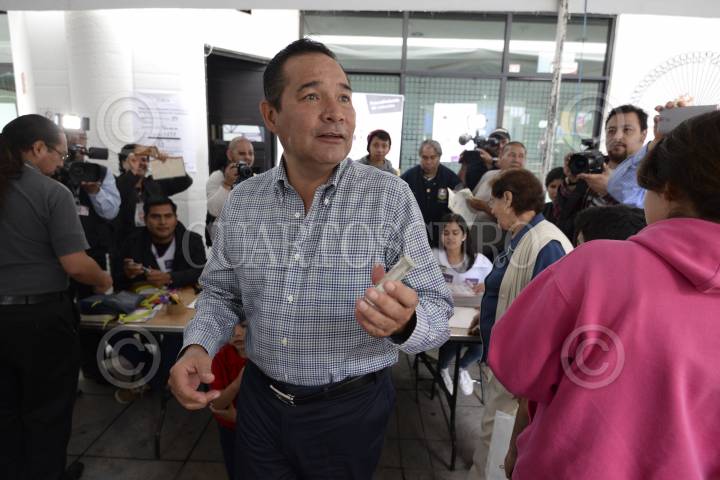 TOLUCA, ESTADO DE MÉXICO, 04JUNIO2017.- El Secretario de Desarrollo Social federal, Luis Miranda Nava, acudió a la casilla ubicada en la colonia Electricistas Locales, pero no pudo votar ya que su credencial de elector no estaba actualizada. FOTO: ARTEMIO GUERRA BAZ /CUARTOSCURO.COM