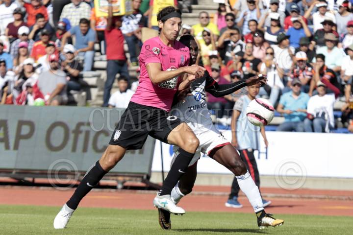 PUEBLA, PUEBLA; 05AGOSTO2017.- Los jugadores Luis Quiñones y Omar González durante jugada del partido entre Lobos BUAP y los Tuzos del Pachuca con marcador final 3-1 correspondiente a la jornada 3 del torneo de Apertura 2017 de la Liga MX celebrado en el estadio Universitario de la BUAP. FOTO: HILDA RÍOS/ CUARTOSCURO.COM