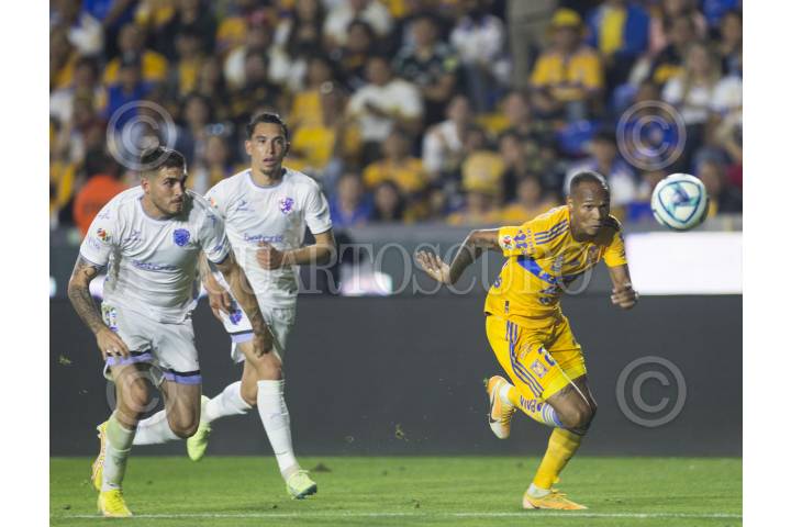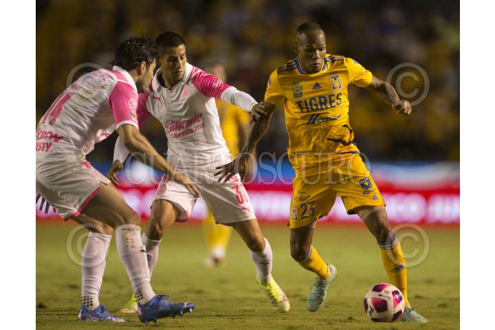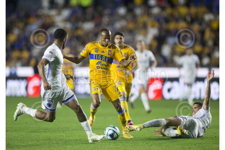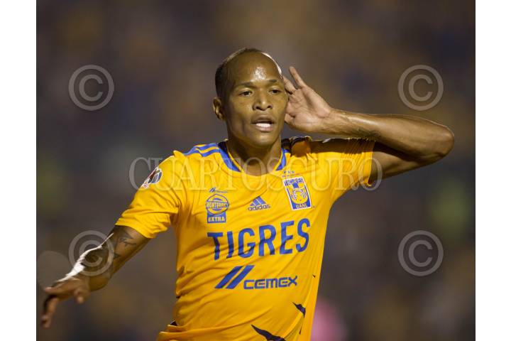 Luis Quiñones de Tigres durante el encuentro con el León, correspondiente al segundo partido de las semifinales de la Concacaf CL.