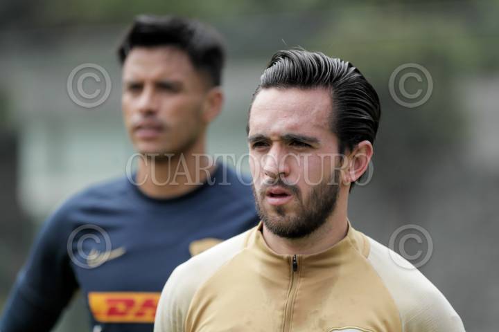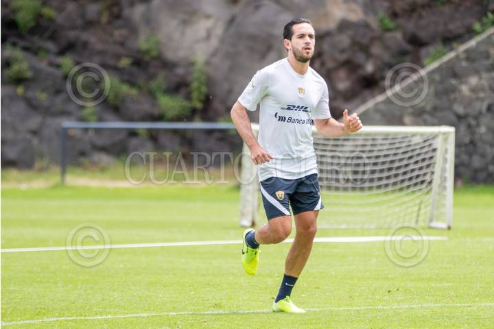Luis Quintana (Pumas) festeja su anotación con sus compañeros