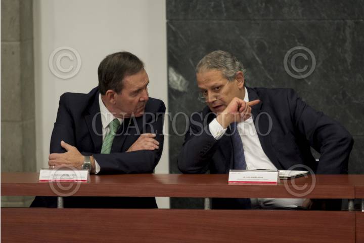 CIUDAD DE MÉXICO, 28SEPTIEMBRE2017.- Luis Robles Miaja, presidente del Consejo de Administración del Grupo Financiero BBVA Bancomer, y Carlos Torres Vila, consejero delegado de BBVA; sostuvieron un encuentro con medios de comunicación para hablar sobre el balance comercial de esta institución bancaria en nuestro país. FOTO: MOISÉS PABLO /CUARTOSCURO.COM