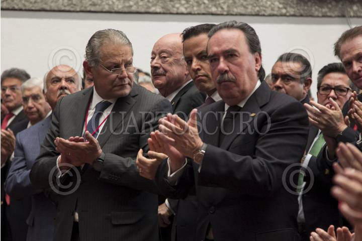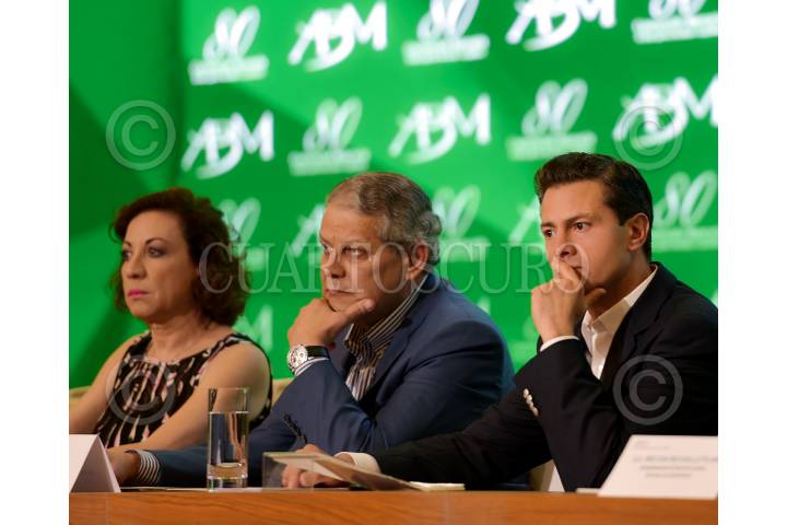 CIUDAD DE MÉXICO, 03MAYO2017.- Luis Robles Miaja, presidente de la Asociación de Bancos de México; Alejandro Murat, gobernador de Oaxaca, y el senador Emilio Gamboa Patrón, durante la 114 asamblea del organismo, así como la conmemoración de su 45 aniversario. Durante el acto se habló del importante papel que desempeño Silva-Herzog al frente de la institución y las acciones que hasta la fecha se continúan para el beneficio de los trabajadores. FOTO: GALO CAÑAS /CUARTOSCURO.COM