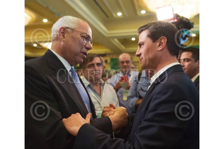 ACAPULCO, GUERRERO, 22MARZO2017.- Luis Robles Miaja, presidente de la Asociación de Bancos de México, el presidente Enrique Peña Nieto, y Agustín Carstens, gobernador del Banco de México, durante la inauguración de la 80 Convención Bancaria "El Dilema Global: Liberalismo vs Populismo". FOTO: PRESIDENCIA /CUARTOSCURO.COM