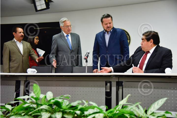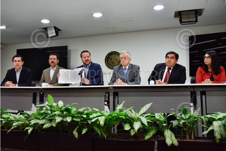 CIUDAD DE MÉXICO, 23OCTUBRE2013.- Los coordinadores en el Senado Luis Sánchez Jiménez del PRD; Fernando Herrera Ávila del PAN, Manuel Bartlett Díaz del PT, y el senador Luis Miguel Barbosa, durante la conferencia de prensa en donde objetaron la destitución del fiscal de la FEPADE, y además opinaron sobre el caso Odebrecht. FOTO: MARIO JASSO /CUARTOSCURO.COM