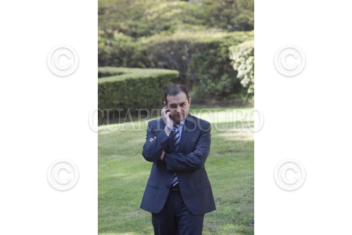 MÉXICO, D.F., 09NOVIEMBRE2012.- Ernesto Cordero Arroyo, presidente de la mesa directiva del Senado de la República, atiende el teléfono en los jardines de la residencia oficial de Los Pinos, previo a la ceremonia en donde se firmo el decreto que reforma la Ley General de Contabilidad Gubernamental. FOTO: MOISÉS PABLO /CUARTOSCURO.COM