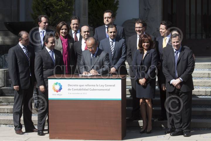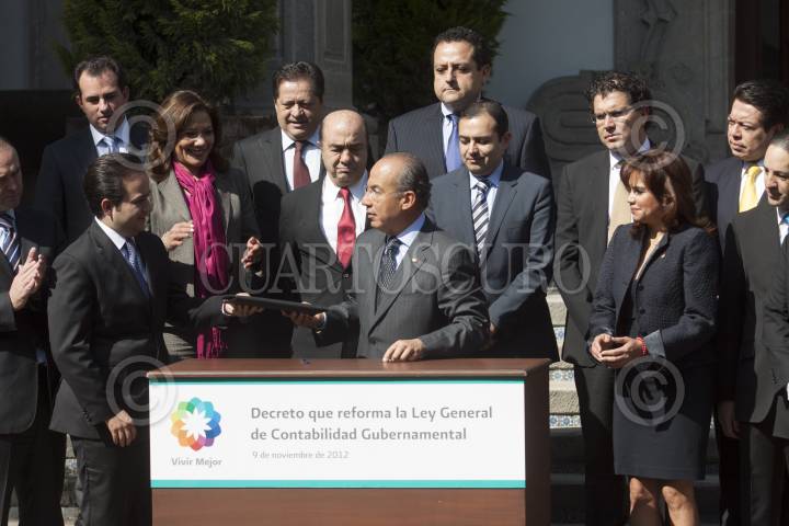 MÉXICO, D.F., 09NOVIEMBRE2012.- Felipe Calderón Hinojosa, Presidente de México, firmo el decreto que reforma la Ley General de Contabilidad Gubernamental, iniciativa que mando el Jefe del Ejecutivo en calidad de preferente a la Cámara de Diputados. FOTO: MOISÉS PABLO /CUARTOSCURO.COM