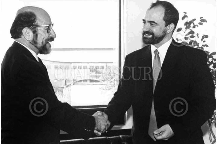 Luis de la Barreda Solorzano entrega las llaves al nuevo presidente de la Comisión de Derechos Humanos del D.F Emilio Alvarez Icaza. FOTO:Especial Cuartoscuro/CUARTOSCURO.COM