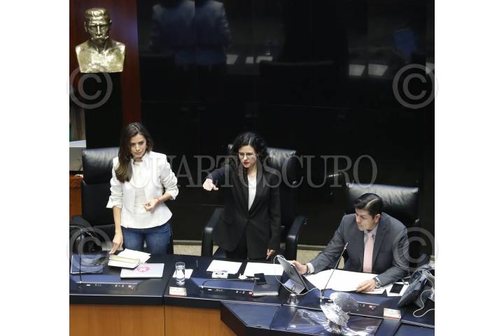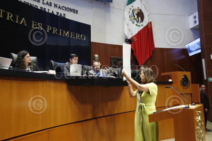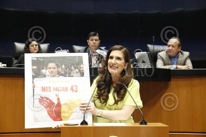 CIUDAD DE MÉXICO, 11OCTUBRE2023.- Luisa María Alcalde Luján, secretaria de Gobernación, compareció ante senadores en el marco de la Glosa del Quinto Informe de Gobierno, durante la intervención de Kenia López Rabadán esta le recordó que el gobierno federal aun no resuelva de desaparición de los 43 normalistas de Ayotzinapa. FOTO: CUARTOSCURO.COM