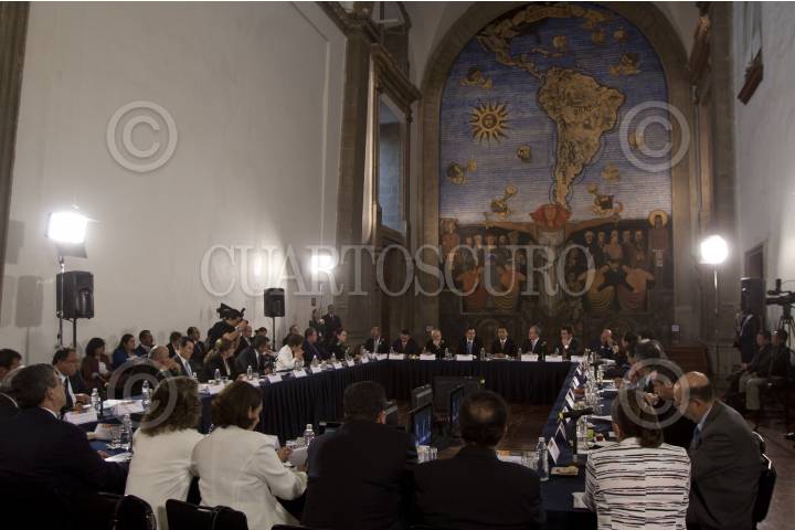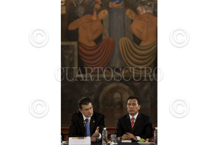 MÉXICO, D.F., 05OCTUBRE2011.- Alonso Lujambio, secretario de Educación Pública y Facundo Rosas, comisionado de la Policía Federal durante una reunión de trabajo con los titulares de educación de las diversas entidades del país en el salón Hispanoamericano de la Secretaria de Educación Pública. FOTO: RODOLFO ANGULO/CUARTOSCURO.COM
