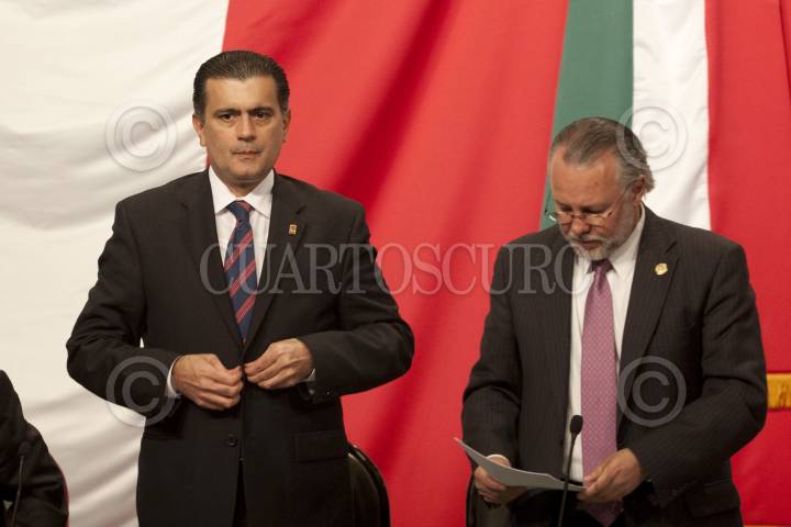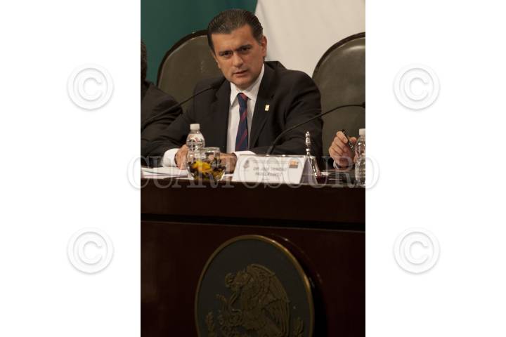 MEXICO, D.F., 30NOVIEMBRE2011.- Francisco ciscomani Freaner, nuevo Subsecretario de la Secretaría de Educación Pública (SEP), fue nombrado por Alonso Lujambio, Secretario de Educación Publica durante una conferencia donde se anuncio la renuncia de José Fernando González quien fungía como Subsecretario de Educación de la SEP. Dicho evento tuvo lugar en el Salon Simon Bolivar de la Secretaria de Educacion Publica. FOTO: ENRIQUE ORDOÑEZ/CUARTOSCURO.COM