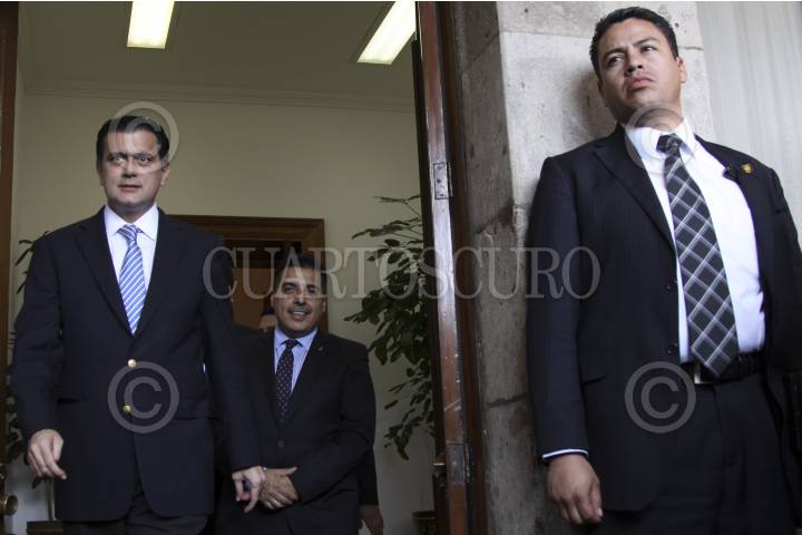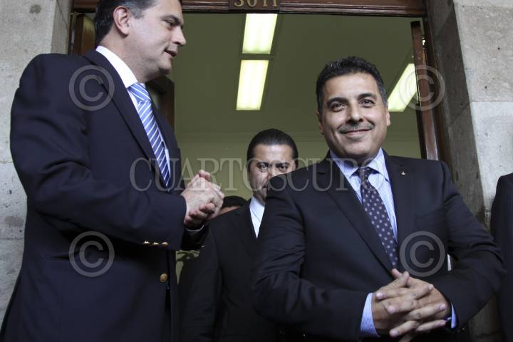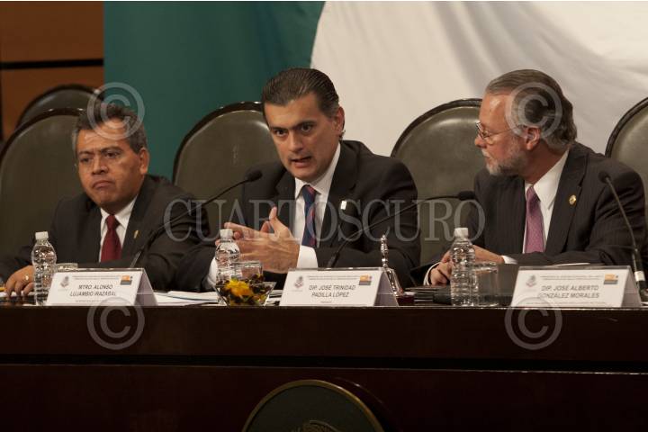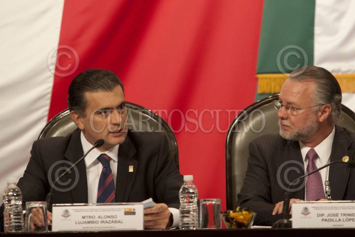 MÉXICO, D.F., 18OCTUBRE2011.- Alonso Lujambio, titular de la Secretaria de Educación Publica (SEP), acompañado de José Trinidad Padilla, Diputado del PRI, compareció ante la Comisión de Educación en la Cámara de Diputados por la glosa del informe del ejecutivo. FOTO: GUILLERMO PEREA/CUARTOSCURO.COM