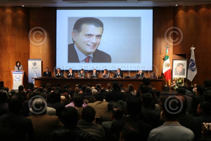 MÉXICO, D.F., 07NOVIEMBRE2012.- El Partido Acción Nacional realizó en su sede nacional un homenaje al extinto senador, Alonso Lujambio quien en fechas recientes falleció, acudieron a dicho homenaje Alejandro Poire, Secretario de Gobernación, Gustavo MAdero, presidente del partido, Margarita Zavala, esposa del presdiente Felipe Calderón y la viuda Teresa Toca. FOTO: FRANCISCO RODRÍGUEZ /CUARTOSCURO.COM
