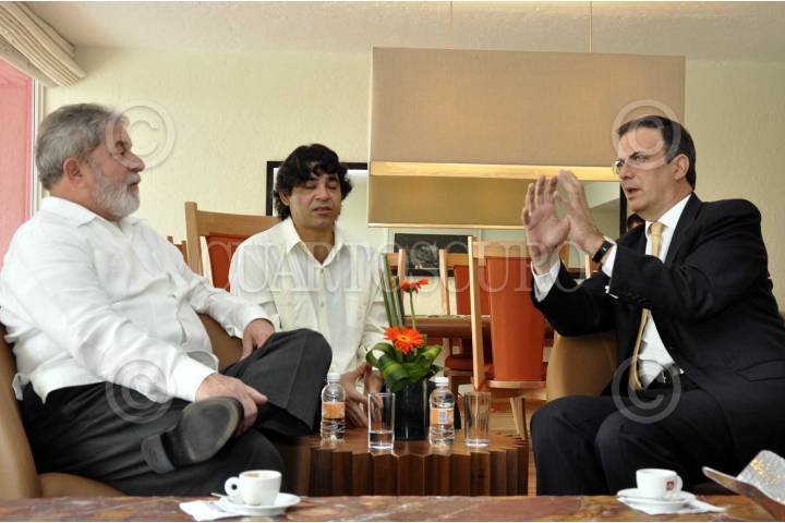 MÉXICO, D.F., 22JUNIO2011.- Luiz Ignacio "Lula" da Silva, converso con Marcelo Ebrard, Jefe de Gobierno Capitalino durante la reunión en privado que mantuvieron durante la visita que tiene en el país. FOTO: CUARTOSCURO.COM