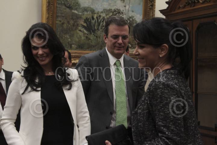 MÉXICO D.F., 25OCTUBRE2011.- Rosalinda Bueso, esposa de Marcelo Ebrard, Jefe de Gobierno Capitalino durante la reunion que mantuvieron antes de entregarle la medalla Amalia Solorzano a Luiz Ignacio Lula, ex presidente de Colombia. FOTO: ENRIQUE ORDÓÑEZ/CUARTOSCURO.COM