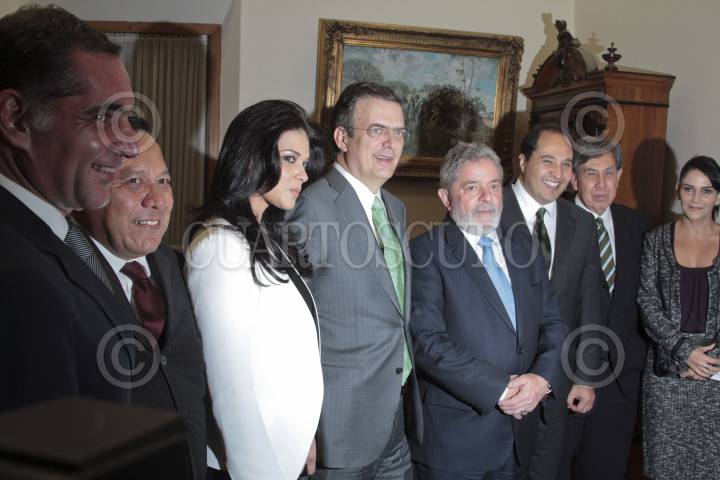 MÉXICO D.F., 25OCTUBRE2011.- Gabino Cue, gobernador de Oaxaca junto a Jesus Zambrano, lider del PRD, Rosalinda Bueso y su esposo Marcelo Ebrard, Jefe de Gobierno Capitalino; Luiz Ignacio Lula, ex presidente de Brasil; Leonel Godoy, gobernador de Michoacana; Silvano Aureoles, candidato a la gubernatura de Michoacan y Cuauhtemoc Cardenas, lider moral del PRD durante la reunion que mantuvieron antes de entregarle la medalla Amalia Solorzano a Luiz Ignacio Lula, ex presidente de Colombia. FOTO: ENRIQUE ORDÓÑEZ/CUARTOSCURO.COM