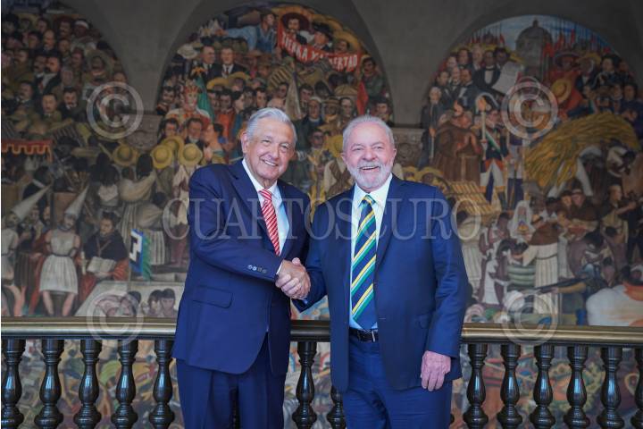 Andrés Manuel López Obrador, Presidente de México, y Luiz Inácio Lula da Silva, ex Presidente de Brasil, se saludan en los pasillos de Palacio Nacional.