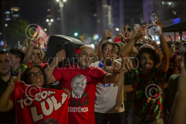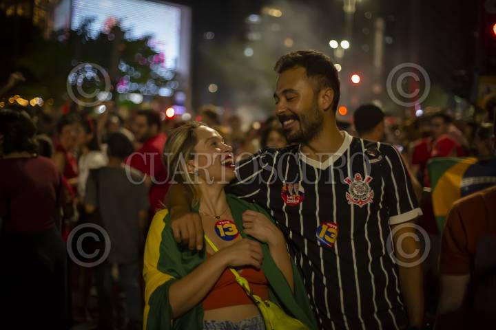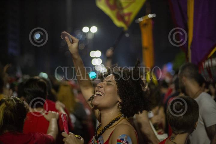 Miles de simpatizantes del candidato Lula Da Silva acudieron a la avenida Paulista para festejar el triunfo.
