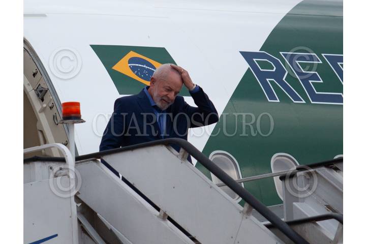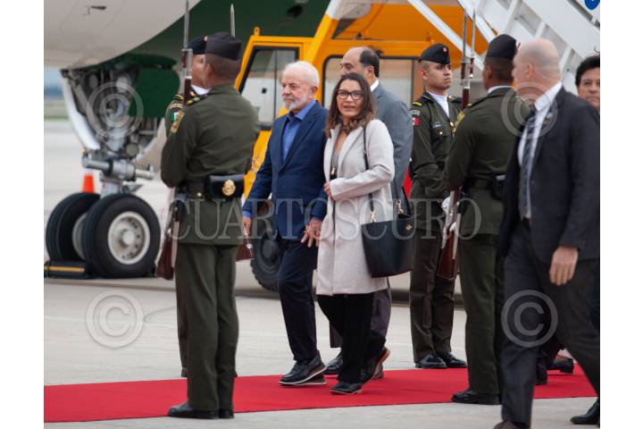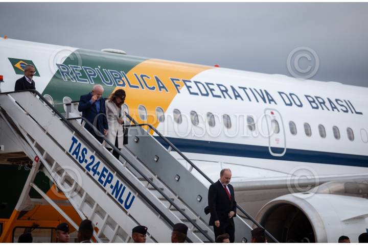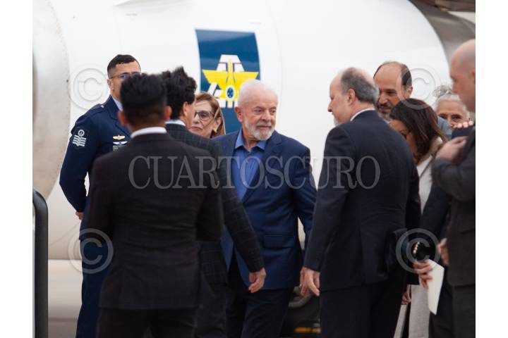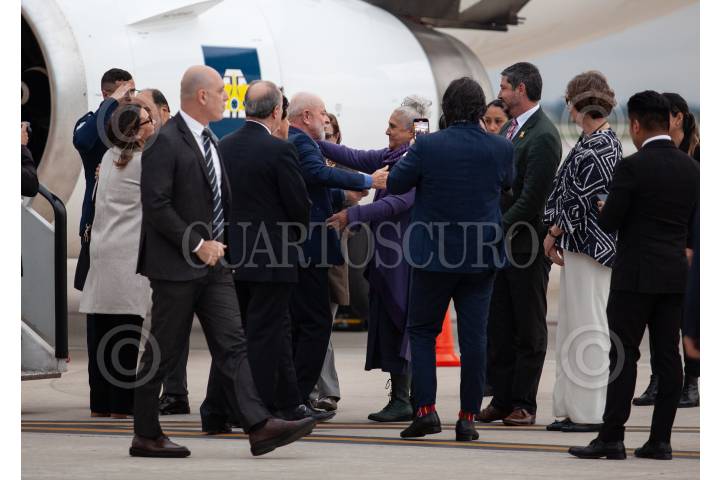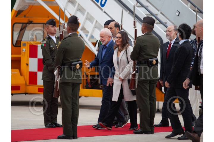 ZUMPANGO DE OCAMPO, ESTADO DE MÉXICO, 29SEPTIEMBRE2024.- Luiz Inácio Lula da Silva, presidente de Brasil a su llegada al Aeropuerto Internacional Felipe Ángeles (AIFA) donde se espera que asista a la toma de protesta que se llevará a cabo el próximo primero de octubre. Fue recibido por Laura Esquivel. FOTO: ANDREA MURCIA /CUARTOSCURO.COM