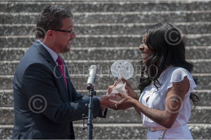 MÉXICO, D.F., 23ABRIL2014.- La cantante española Concha Buika, develó una placa con su nombre en el Paseo de las Lunas al pie del Auditorio Nacional, quien además recibió una Luna del Auditorio. La cantante originaria de Mallorca, ofrecerá un concierto el día de mañana en el Lunario de dicho recinto presentando su espectáculo La noche más larga. FOTO: DIEGO SIMÓN SÁNCHEZ /CUARTOSCURO.COM