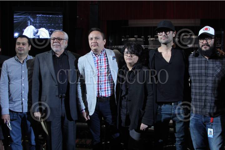 CIUDAD DE MÉXICO, 23OCTUBRE2017.- Maurico Chacón, director de escenografía; Luis de Llano, director artístico de las Lunas del Auditorio; Gabriel Leif, director de operaciones; Patricia Fuentes, coordinadora general de producción; Germán Castellanos, diseño de Iluminación, y Rudy Rosales, coordinador de operación de Audio, durante la conferencia para anunciar los detalles técnicos de la XV edición de los premios, próximos a celebrarse el próximo miércoles. La producción contará con 200 artistas. FOTO: GALO CAÑAS /CUARTOSCURO.COM